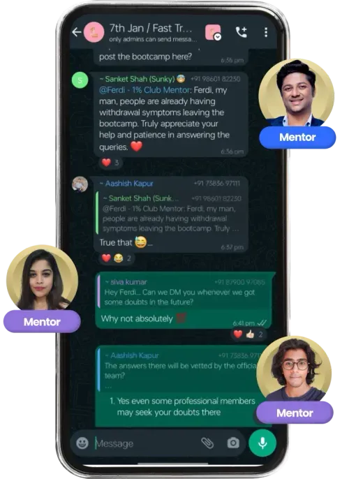 The 1% Club is one of India's largest finance communities. We offer more than just a course. As a lifetime membership, you gain access to offline events across India, a lively social media platform connecting finance enthusiasts, and the latest financial news. With a focus on implementing knowledge through our financial tools, our community is comprised of experienced members who excel in their fields, earning over 10 lakh per year.