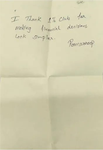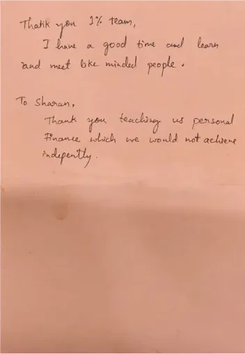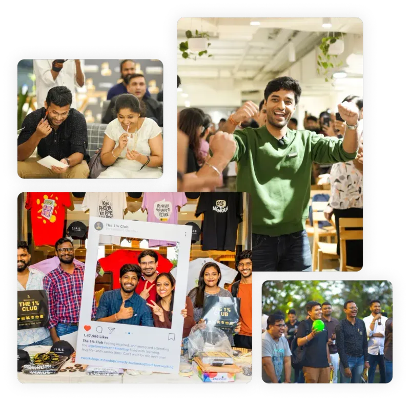 The 1% Club is one of India's largest finance communities. We offer more than just a course. As a lifetime membership, you gain access to offline events across India, a lively social media platform connecting finance enthusiasts, and the latest financial news. With a focus on implementing knowledge through our financial tools, our community is comprised of experienced members who excel in their fields, earning over 10 lakh per year.